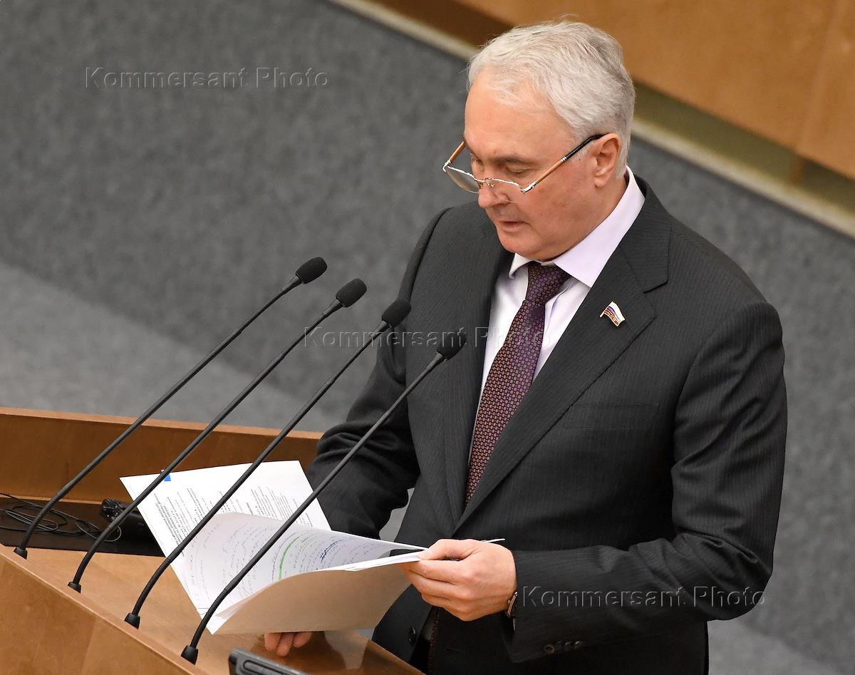 Пленарное заседание Государственной думы (ГД) России. Председатель комитета ГД по бюджету и налогам…