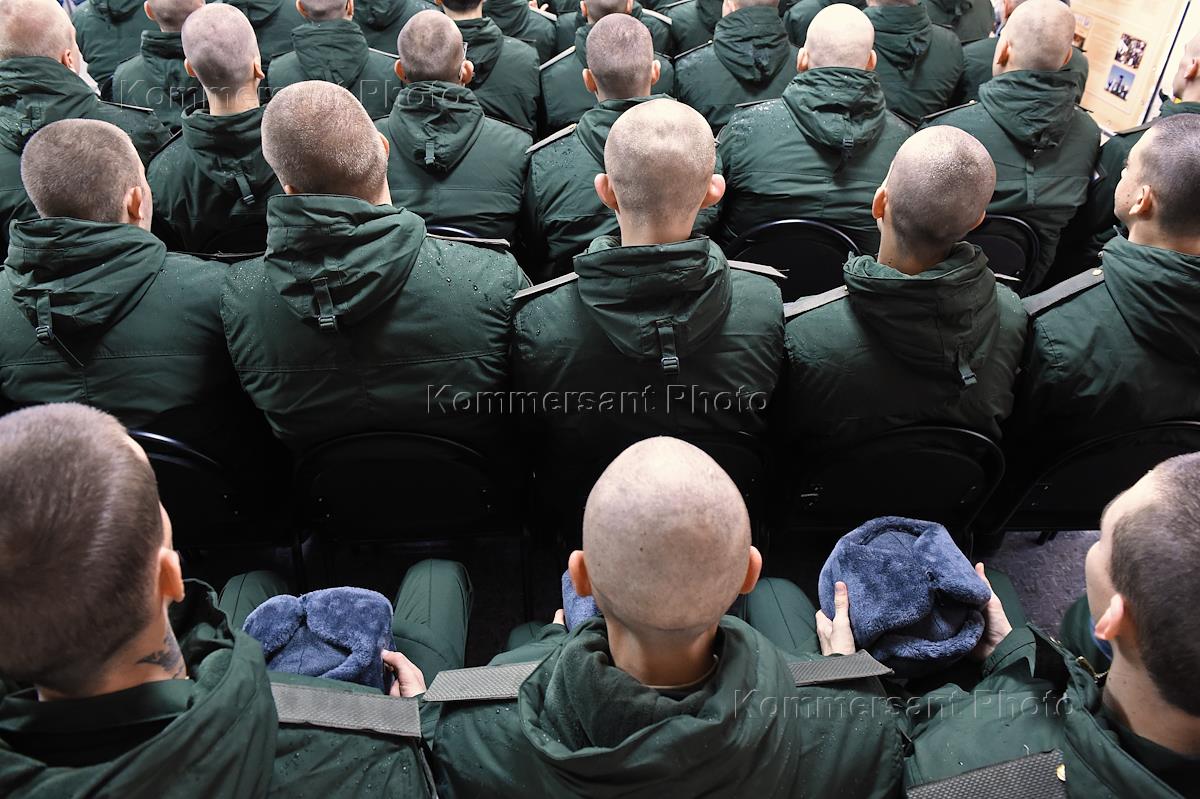 Призывники перед отправкой на прохождение военной службы в Вооруженных Силах России в ходе призыва…