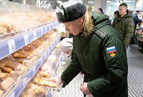 Супермаркет сети "Пяторочка". Покупатели в отделе "Хлеб".