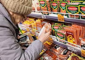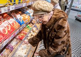 Супермаркет сети "Пятерочка". Покупательница в отделе "Гастрономия".