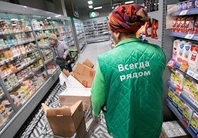 Супермаркет сети "Пятерочка". Продавец в отделе "Молочные товары", надпись на спине куртки "Всегда…