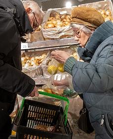Супермаркет сети "Пятерочка". Покупатели в отделе "Овощи".