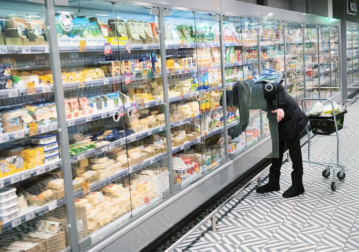 Супермаркет сети "Пятерочка". Покупатели в отделе "Молочных продуктов".