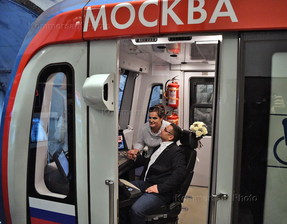 Свадебная церемония в Московском метрополитене на станции "Маяковская" в рамках проекта мэра Москвы…