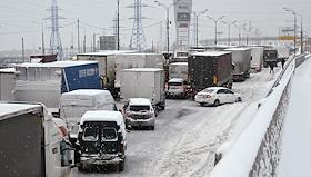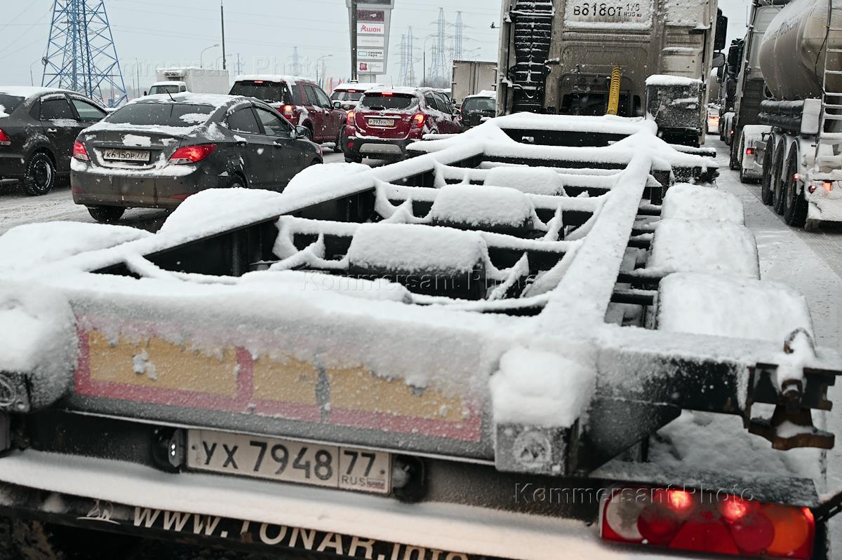 Виды Москвы. Жанровая фотография. Снегопад в городе. Автомобили на московской кольцевой автодороге…