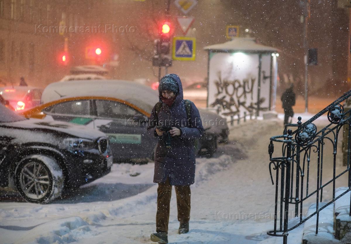 Виды Санкт-Петербурга во время снегопада. Васильевский остров. Жанровая фотография. Водитель…