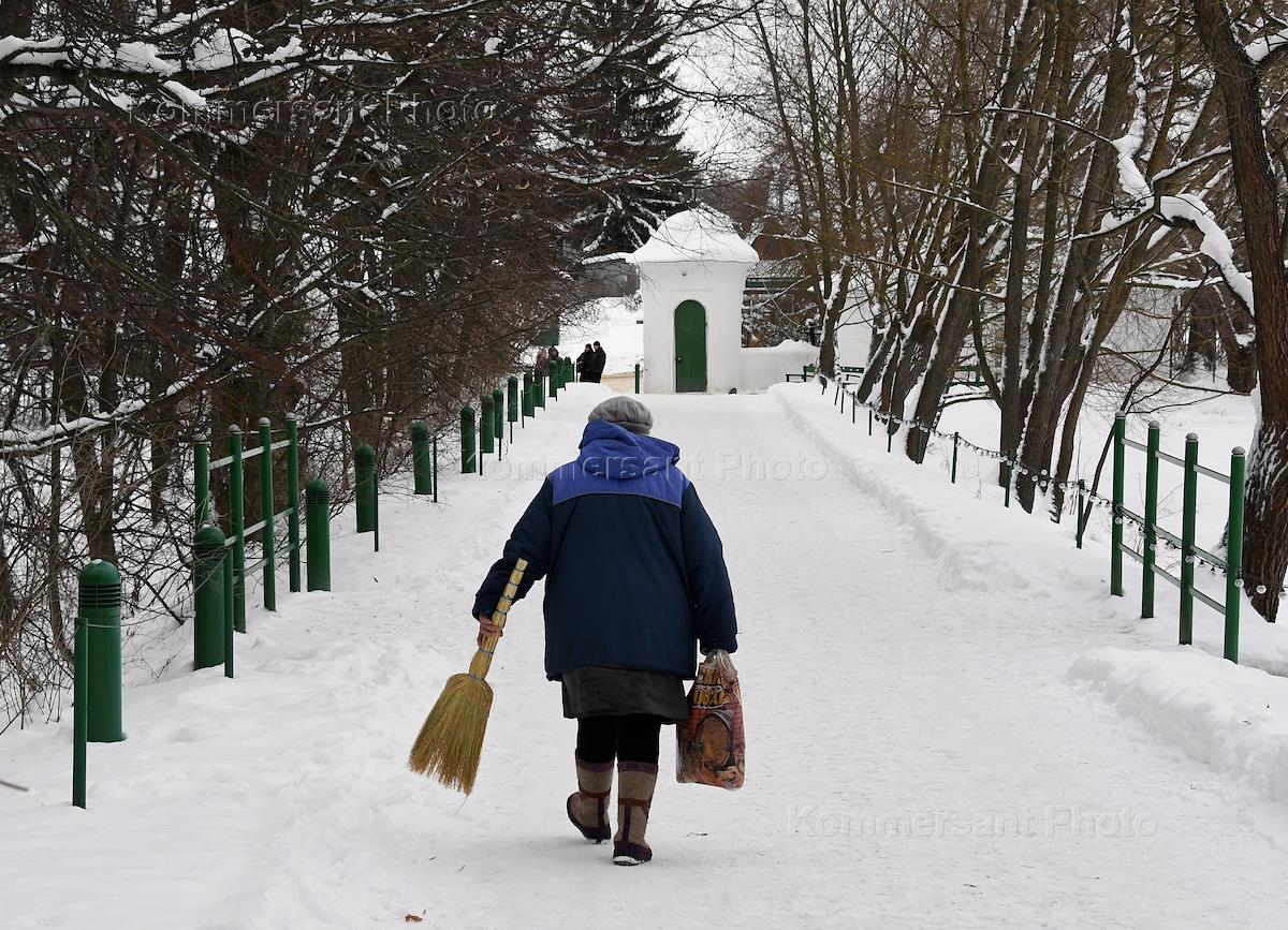 Виды Ясной Поляны. Жанровая фотография. Женщина с веником на подъездной аллее.