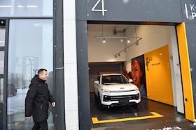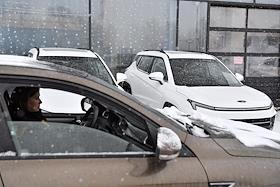 Автомобили "Москвич" в дилерском центре "Петровский" автосалона "Белая дача". Жанровая фотография.…