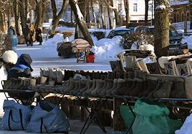 Виды Суздаля. Жанровая фотография. Продажа валеной обуви на улице.