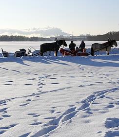 Виды Суздаля. Жанровая фотография. Лошади запряженные в сани на берегу реки Каменки.