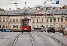 Виды Санкт-Петербурга. Жанровая фотография. Ретро-трамвая - экспоната Экспозиционно-выставочном…
