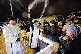 Всенощное бдение и крестный ход из Воскресенского собора Ново-Иерусалимского ставропигиального мужского монастыря на Иордань на великое освящение воды. Крещенские купания.