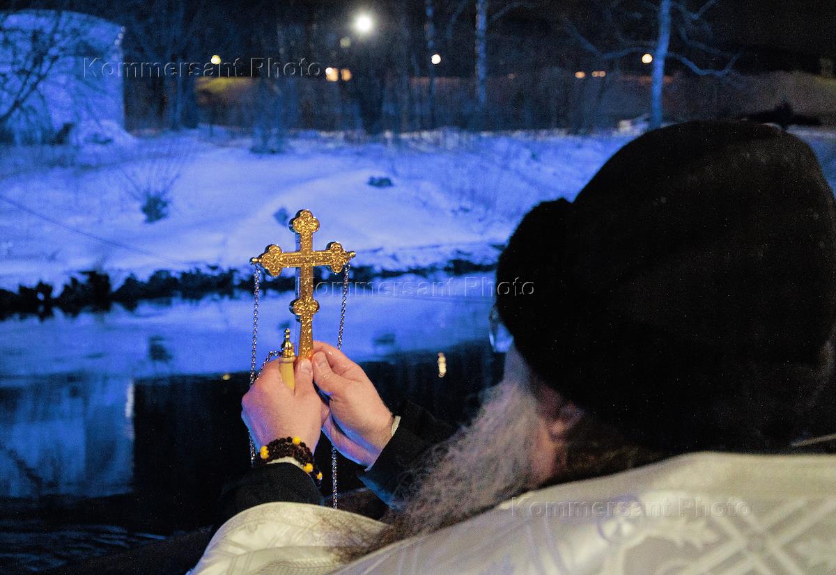 Религия Всенощное бдение и крестный ход из Воскресенского собора Ново-Иерусалимского ставропигиального мужского монастыря на Иордань на великое освящение воды. Крещенские купания.