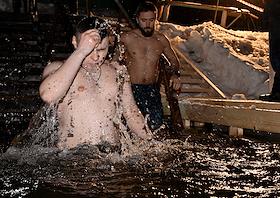 Праздник Крещения Господня. Крещенские купания в пруду на территории санатория "Узкое". Жанровая…