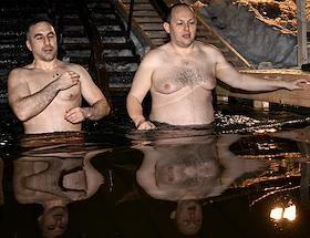 Праздник Крещения Господня. Крещенские купания в пруду на территории санатория "Узкое".