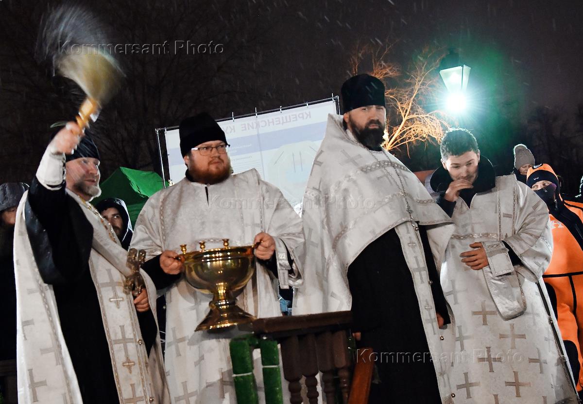Праздник Крещения Господня. Прихожане во время службы в храм6е Троицы Живоначальной в Останкино.