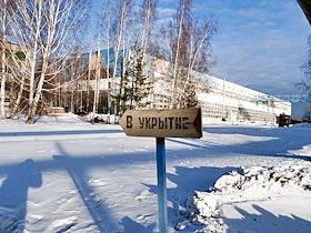 Уральский завод химического машиностроения ("Уралхиммаш"). Здание завода. Указатель "В укрытие".