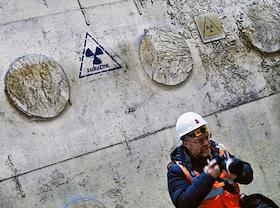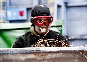 Уральский завод химического машиностроения ("Уралхиммаш"). Рабочий в цехе во время сварки изделия.
