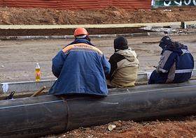 Жанровая фотография. Строительство новых домов. Рабочие во время отдыха.