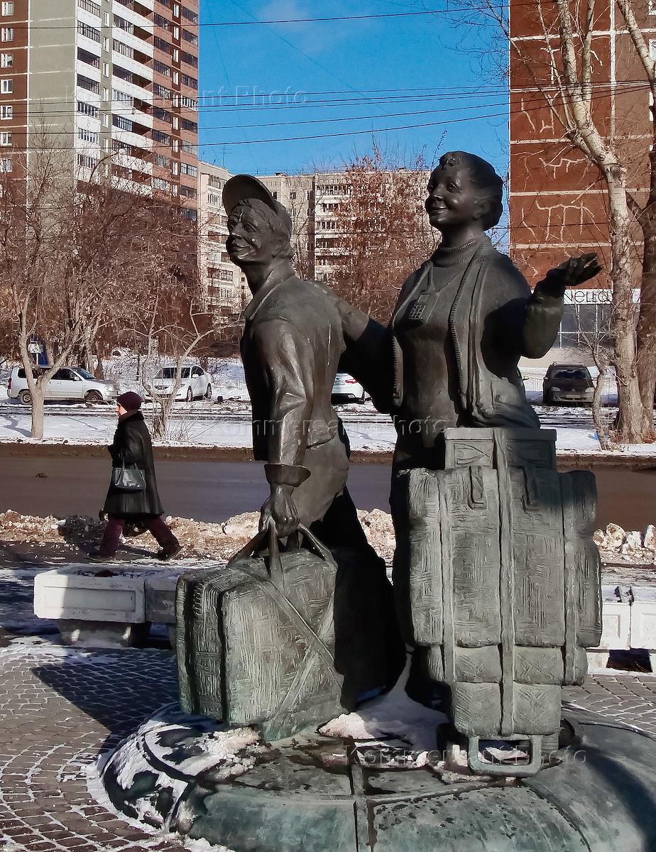 Виды Екатеринбурга. Памятник челнокам у рыночного комплекса "Таганский ряд".