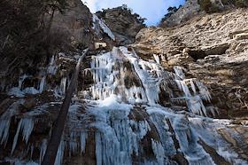 Виды Крыма зимой. Замерзший из-за минусовых температур водопад Учан-Су.