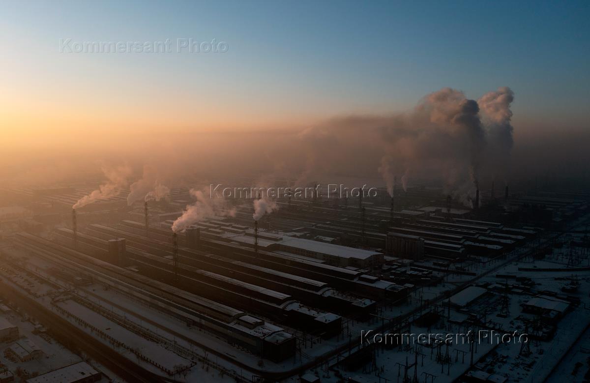 Вид на Красноярский алюминиевый завод (Русал). Жанровая фотография. Территория завода.