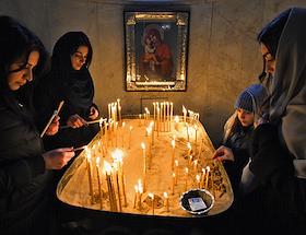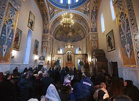 Армянский традиционный праздник "Терендез" в честь Сретения Господня в храме Сурб Рипсиме. Верующие…