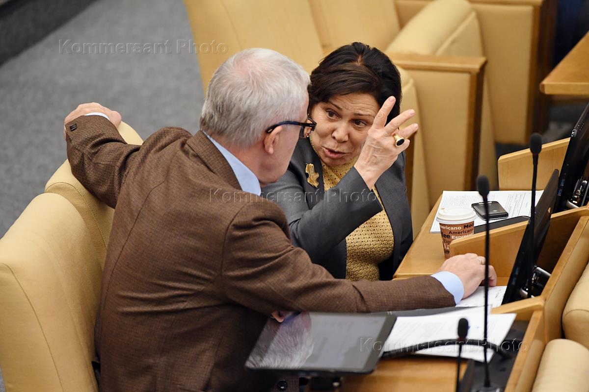 Пленарное заседание Государственной думы (ГД) России. Слева направо: председатель партии…