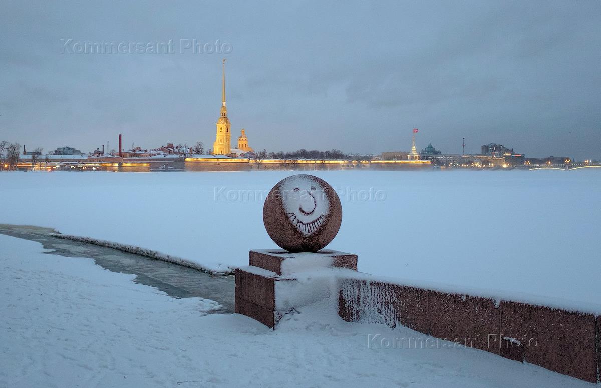 Виды Санкт-Петербурга после снегопада. Вид на Петропавловскую крепость со стрелки Васильевского…