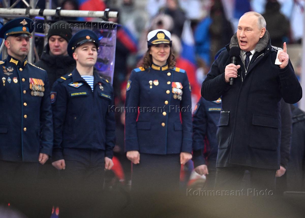 Митинг-концерт, посвященный Дню защитника Отечества, на стадионе "Лужники". Президент России…