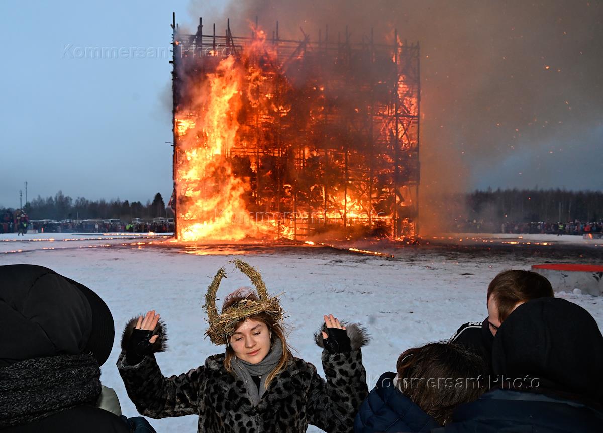 Празднование "Широкой Масленицы" в арт-парке Никола-Ленивец. Сотрудники МЧС России во время сожжения…