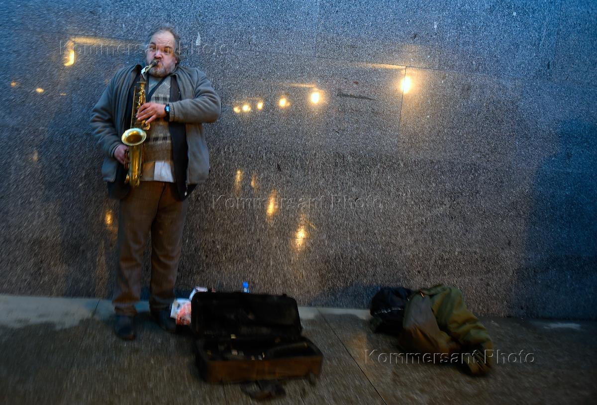 Виды Санкт-Петербурга. Жанровая фотография. Уличный музыкант в подземном пешеходном переходе.