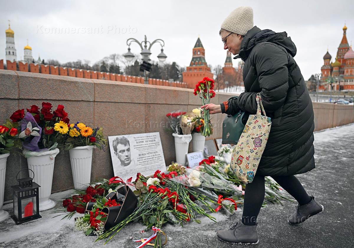 Акция памяти и возложение цветов к месту гибели в годовщину убийства политика Бориса Немцова на…