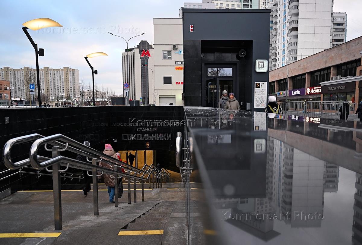Виды Москвы. Жанровая фотография. Вход на станцию "Сокольники" Большой кольцевой линии Московского…