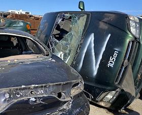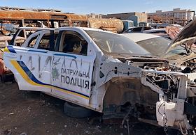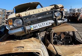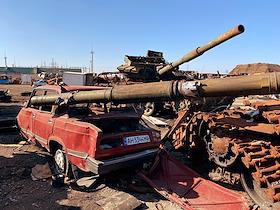 Ситуация в Мариуполе во время проведения специальной военной операции Вооруженных Сил России. Свалка сгоревшей техники.
