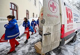 Донорская акция, проведенная центром ФМБА России и больницей Cвятителя Алексия. Медицинская машина…