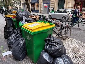 Забастовка мусорщиков в Париже против пенсионной реформы. Жанровая фотография. Переполненный…