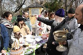 Виды Москвы. Жанровая фотография. Священнослужители и верующие во время чина освящения пасхальных…