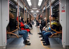 Виды Московского метрополитена. Жанровая фотография. Пассажиры в вагоне поезда.