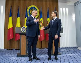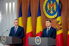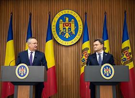 Премьер-министр Республики Молдова Дорин Речан (справа) и премьер-министр Румынии Николае Чукэ…