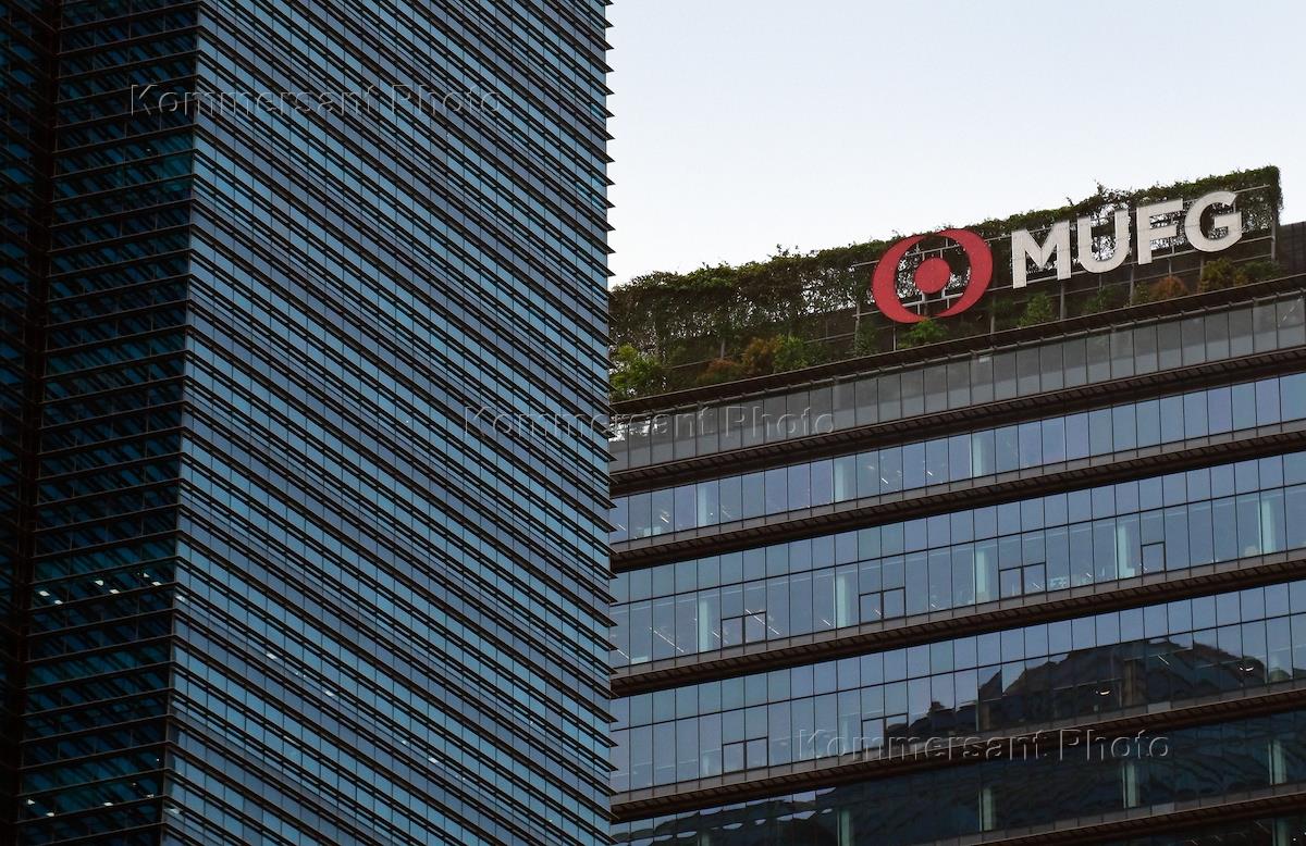 Жанровая фотография. Виды Сингапура. Вывеска компании MUFG на здании.