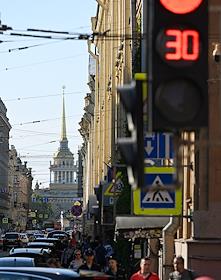 Виды Санкт-Петербурга. Жанровая фотография. Пешеходы у светофора на пешеходном переходе.