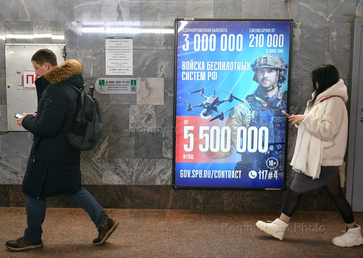 Жанровая фотография. Плакат, приглашающий служить в Войска беспилотных систем России, и информация…