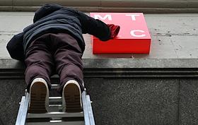 Новый логотип компании МТС на одном из зданий в Москве. Офис МТС.