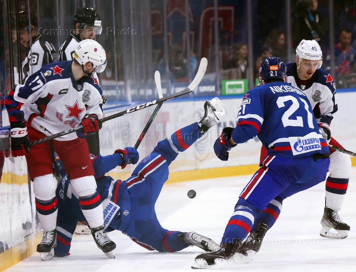 Спорт Континентальная хоккейная лига (КХЛ). Чемпионат сезона 2022/23. Финал запад. Матч между командами СКА (Санкт-Петербург) - ЦСКА (Москва) в Ледовом дворце.