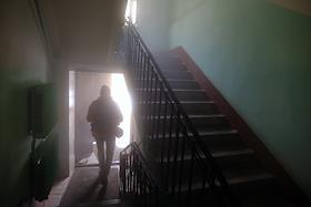 Водяной пар в подъезде дома по улице Дровяная, дом 6, где произошел прорыв трубы водоснабжения и…