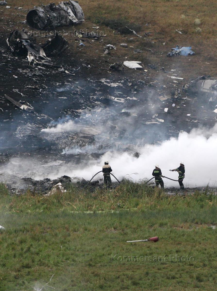 Пожарные на месте падения российского самолета "Ту - 154". В 45 км севернее Донецка во время…