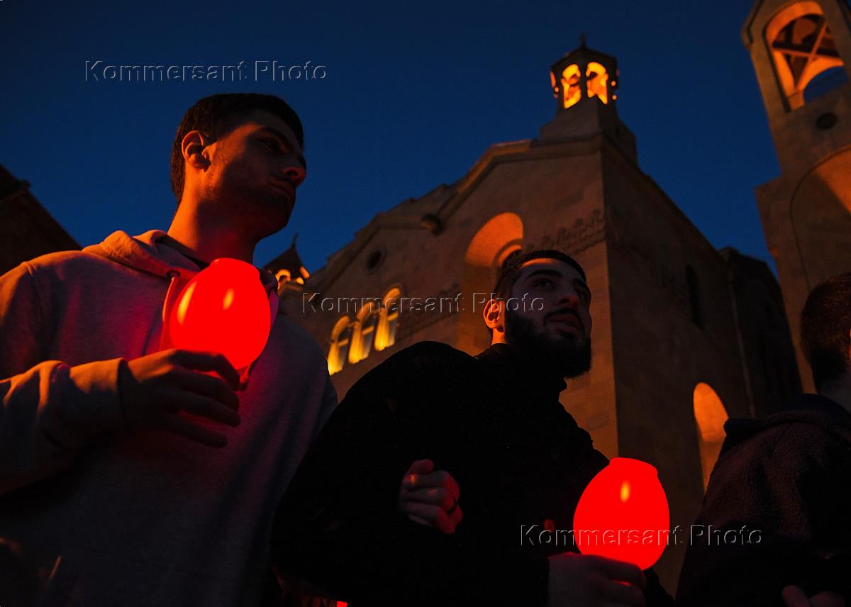 Пасхальный Сочельник (Чрагалуйс). Шествие с лампадами от церкви Св. Саркиса до площади Республики.…