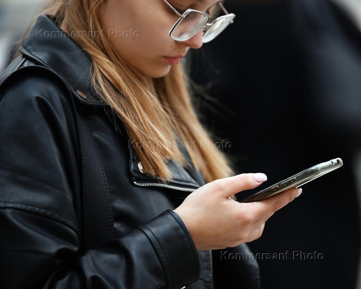 Жанровая фотография. Девушка с мобильным телефоном в руке.