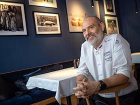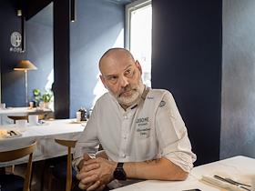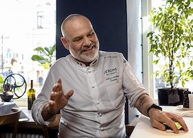 Шеф повар ресторана Jerome Алессандро Кариа во время интервью в интерьере ресторана.